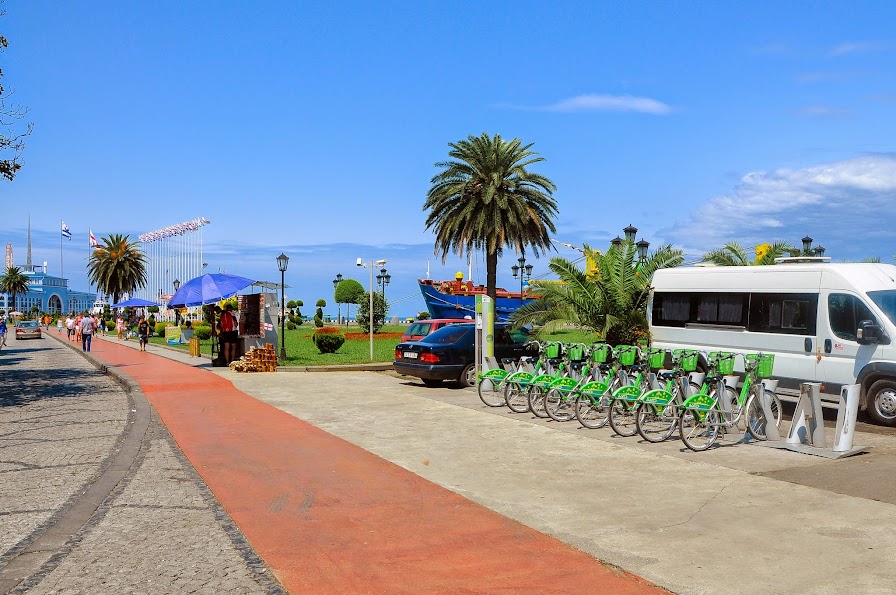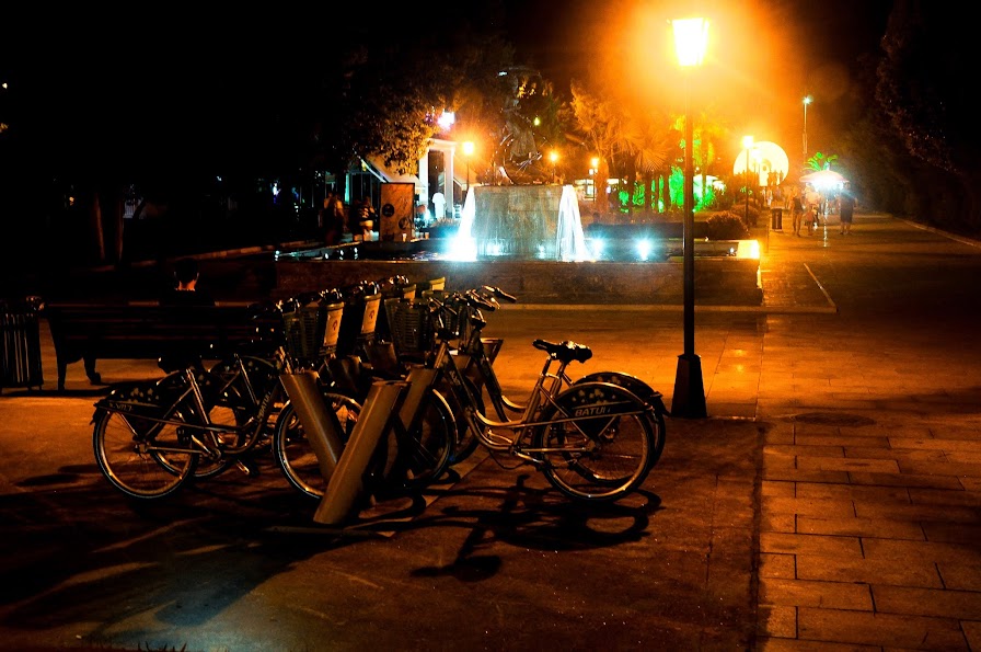 Снова едем по велодорожке набережной Батуми. Вечерняя жизнь. Много отдыхающих. Но в этот раз нет ливня – можно двигаться неспешно и сделать фотографии.